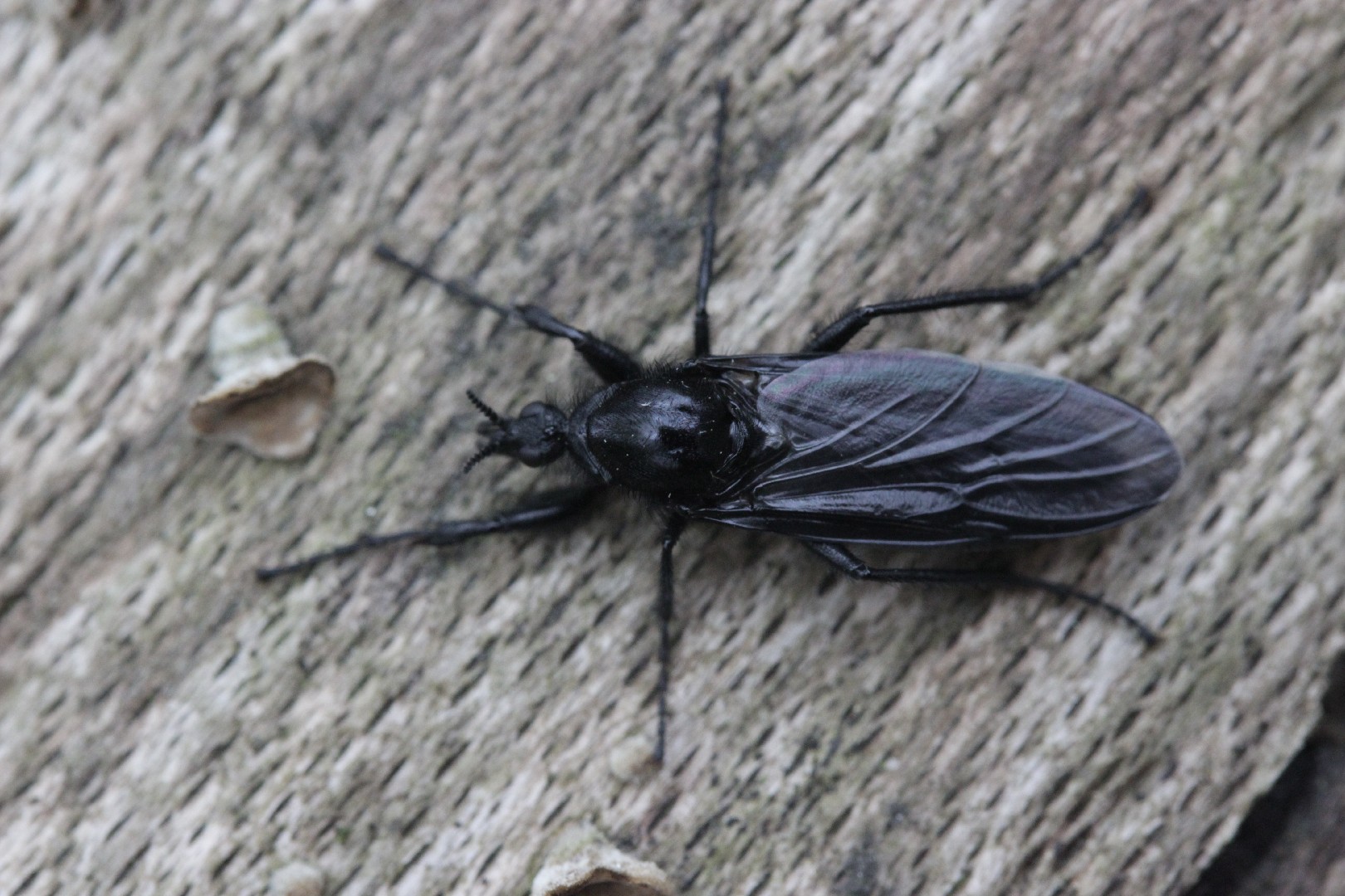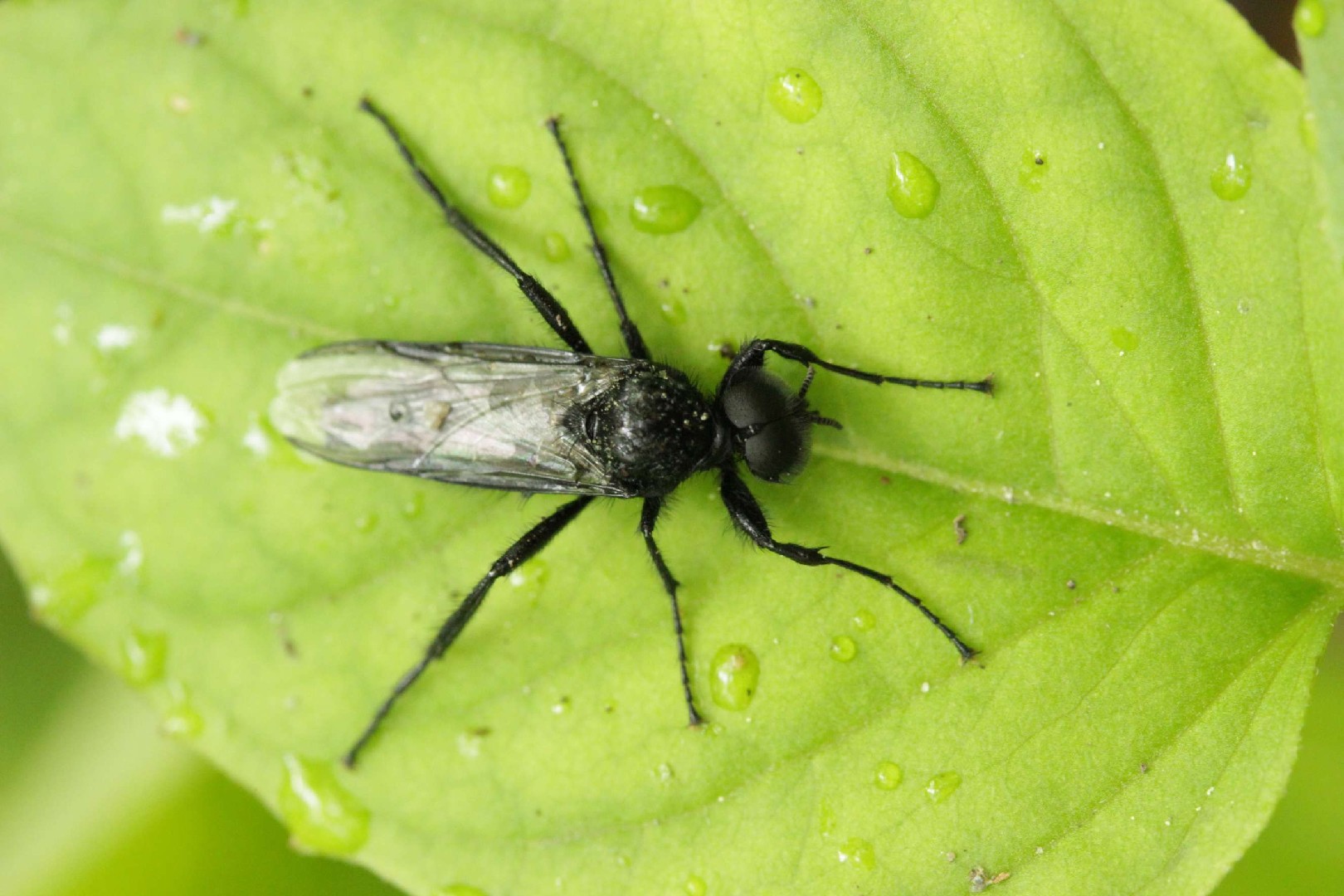 This species displays sexual dimorphism. Female, overall black. Head small, antennae short. Wings membranous, black.