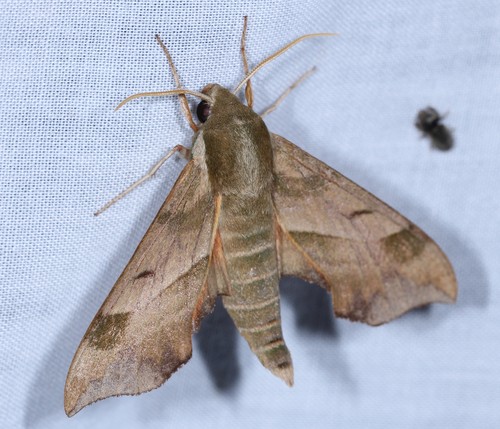 Larva green. A row of red spiracula on pleural body. 5 pairs of prolegs on venter. Rear end of body with a caudal horn.