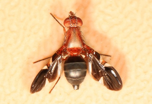 Common Picture-Winged Fly (Delphinia picta) Common Picture-Winged Fly (Delphinia picta) Photo By Judy Gallagher , used under CC-BY-2.0 /Cropped and compressed from original