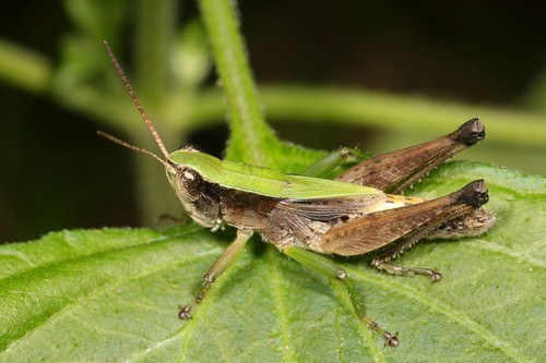Short-winged green grasshopper (Dichromorpha viridis) Short-winged green grasshopper (Dichromorpha viridis) Photo By judygva , used under CC-BY-4.0 /Cropped and compressed from original