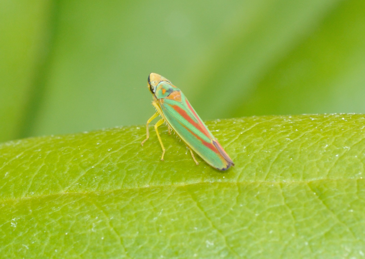 Rhododendron leafhopper (Graphocephala fennahi) Rhododendron leafhopper (Graphocephala fennahi) , used under CC-BY-3.0 /Cropped and compressed from original