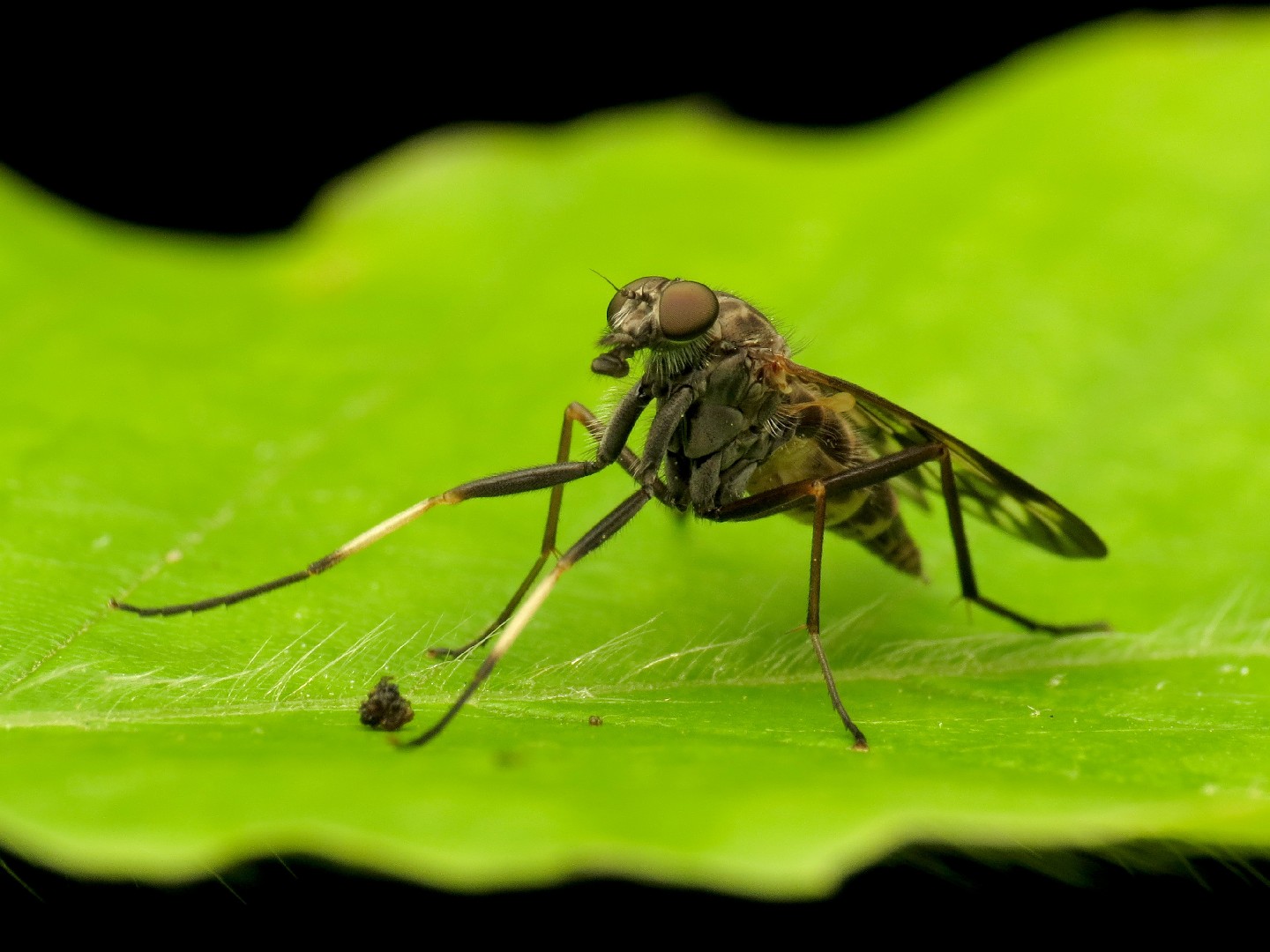 A pair of stylate antennae. Compound eyes big, dark-colored. Sponging mouthparts. Wings membranous, black-striped. 3 pairs of slender legs. Protergum with dark-colored stripes.