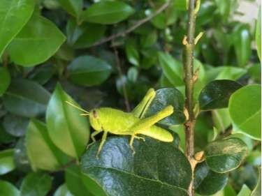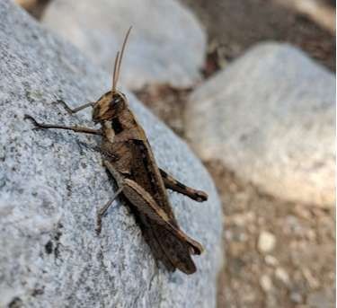 Gray bird grasshopper (Schistocerca nitens) Gray bird grasshopper (Schistocerca nitens) Photo By ameeds , used under CC-BY-4.0 /Cropped and compressed from original
