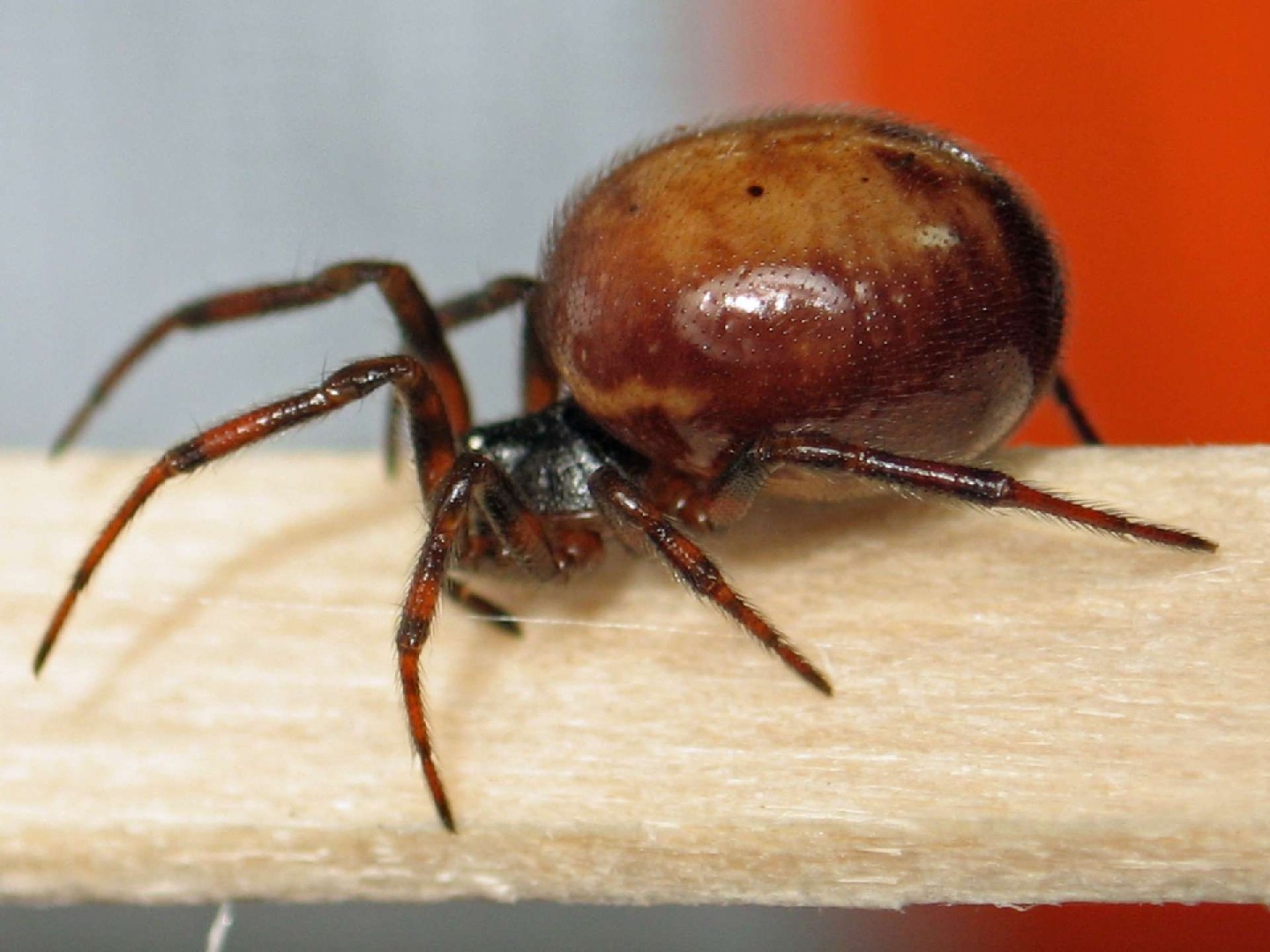 Rabbit hutch spider (Steatoda bipunctata) Rabbit hutch spider (Steatoda bipunctata) Photo By Mandy Howe , used under CC-BY-SA-3.0 /Cropped and compressed from original