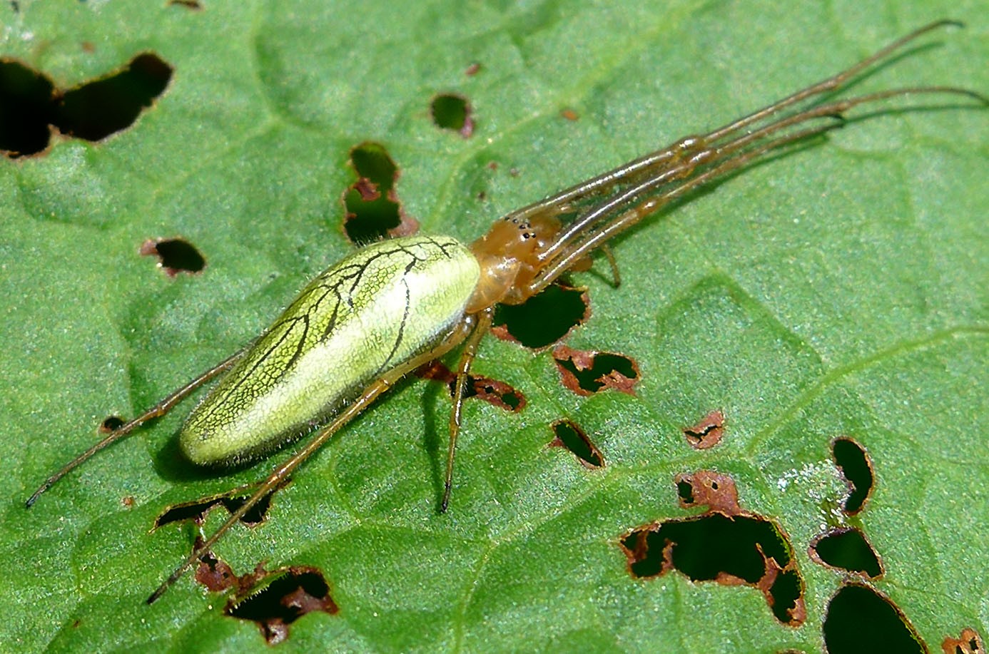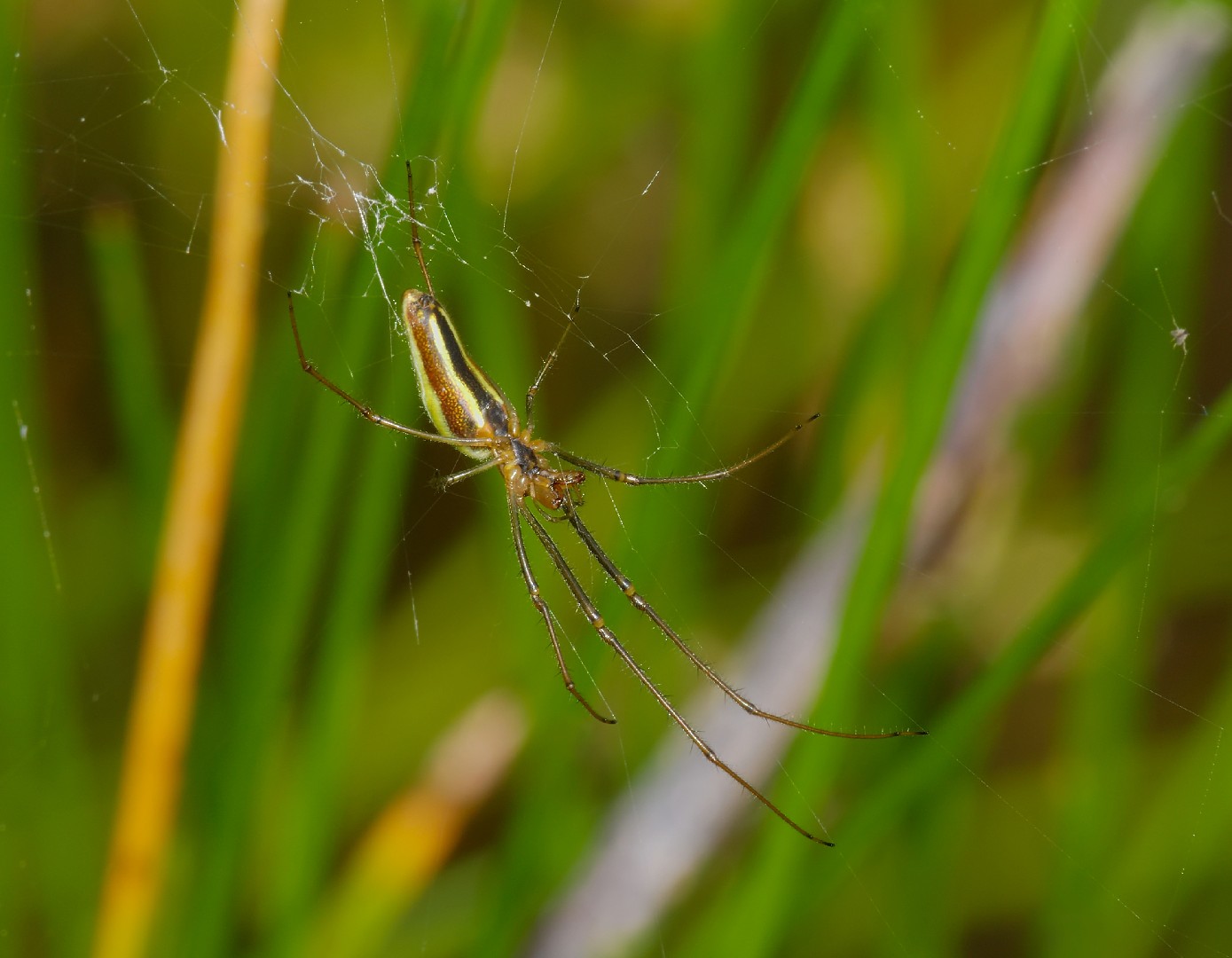 Common stretch spider (Tetragnatha extensa) Common stretch spider (Tetragnatha extensa) Photo By Donald Hobern , used under CC-BY-2.0 /Cropped and compressed from original