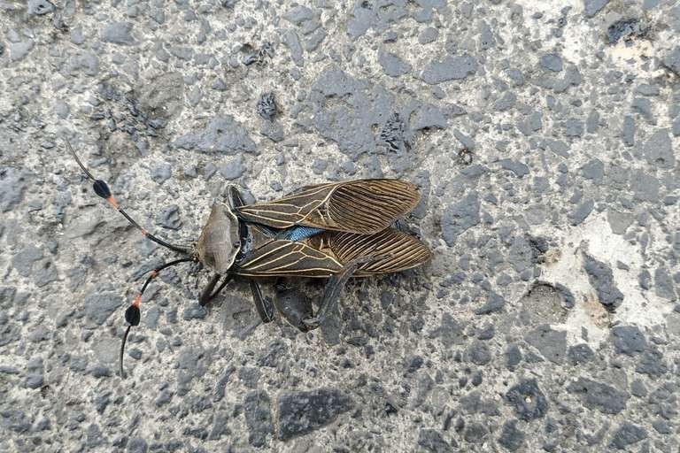 Giant mesquite bug (Thasus acutangulus) Giant mesquite bug (Thasus acutangulus) , used under CC-BY-4.0 /Cropped and compressed from original