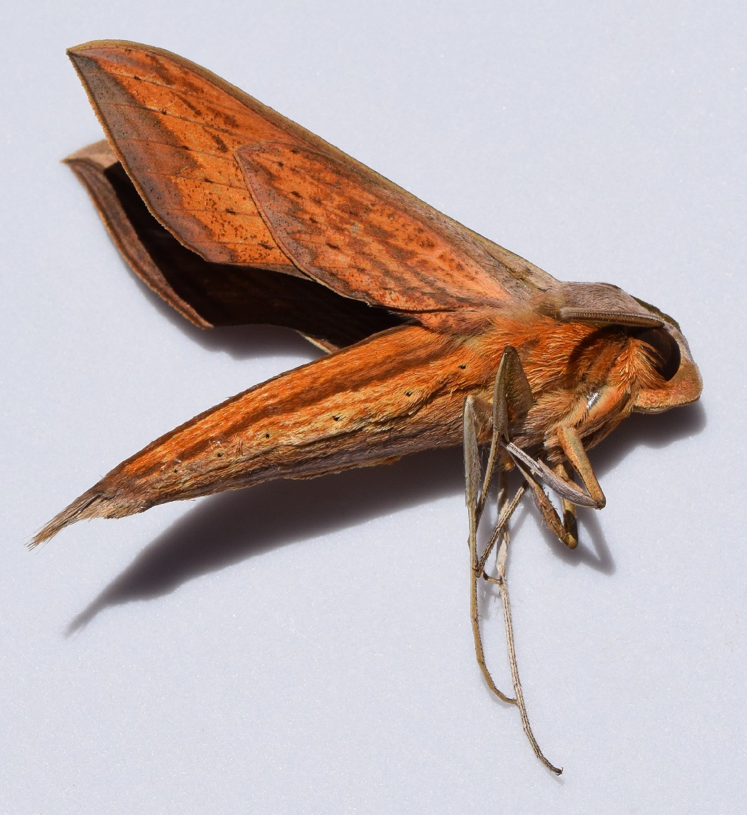 Adult body fusiform, overall dark brown. When resting naturally, it resembles an airplane. Forewing posterior edge with multiple parallel dark brown streamlined patterns, a black dot in the middle of the wing.