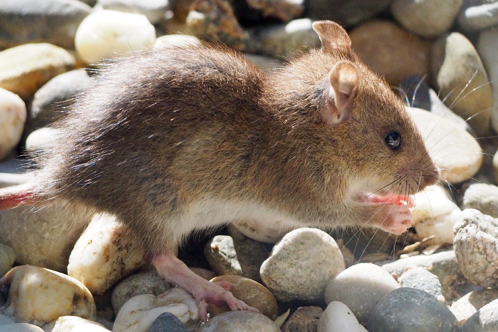 毛色は通常暗褐色または暗灰色で、腹部の毛色は明るい色をしています。頭部は短く、目は丸くて黒色です。両耳と両脚、そして尾にはあまり毛が生えていません。